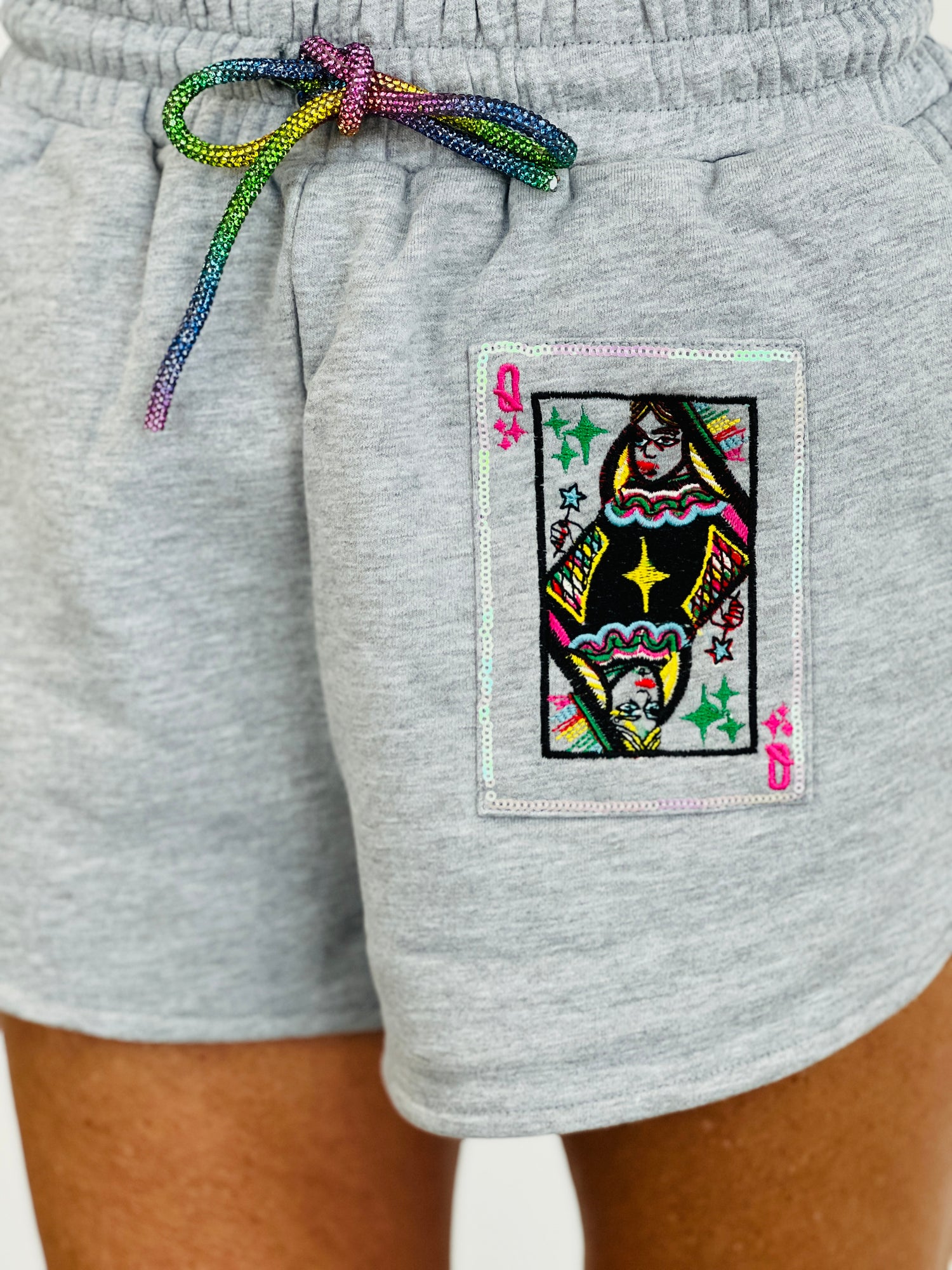 Queen Of Sparkles Grey Rainbow Tie & Logo Shorts (Reg. and Plus)