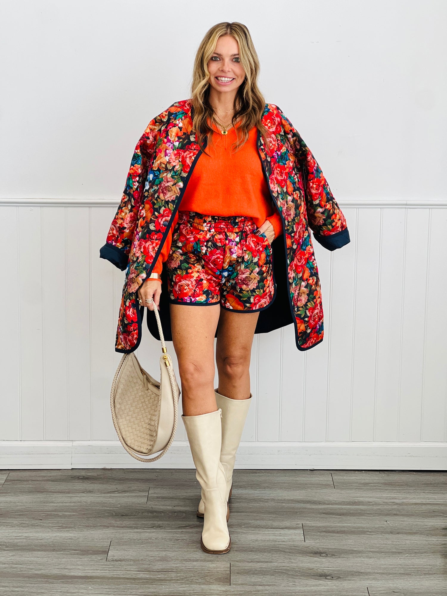 Quilted Vibrant Floral Print Shorts (Reg & Plus)