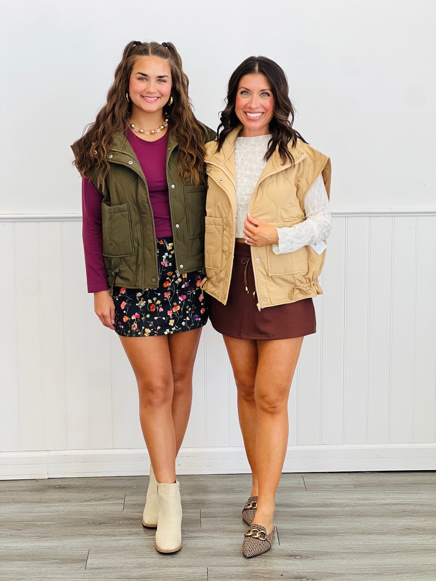 Quilted Zip & Snap Padded Vest (Reg.)-2 Colors