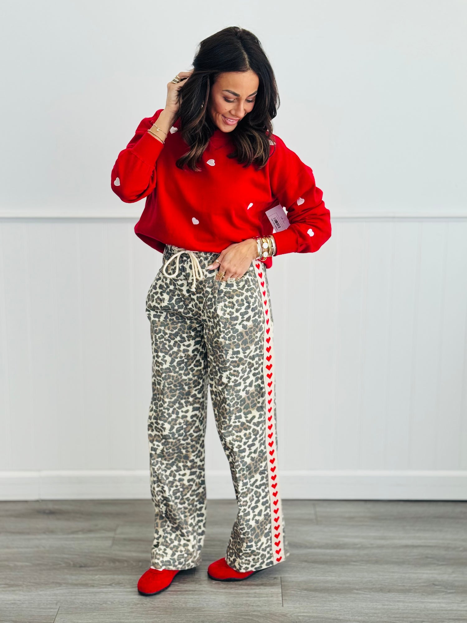 Red Embroidered Hearts Fleece Sweatshirt (Reg.)