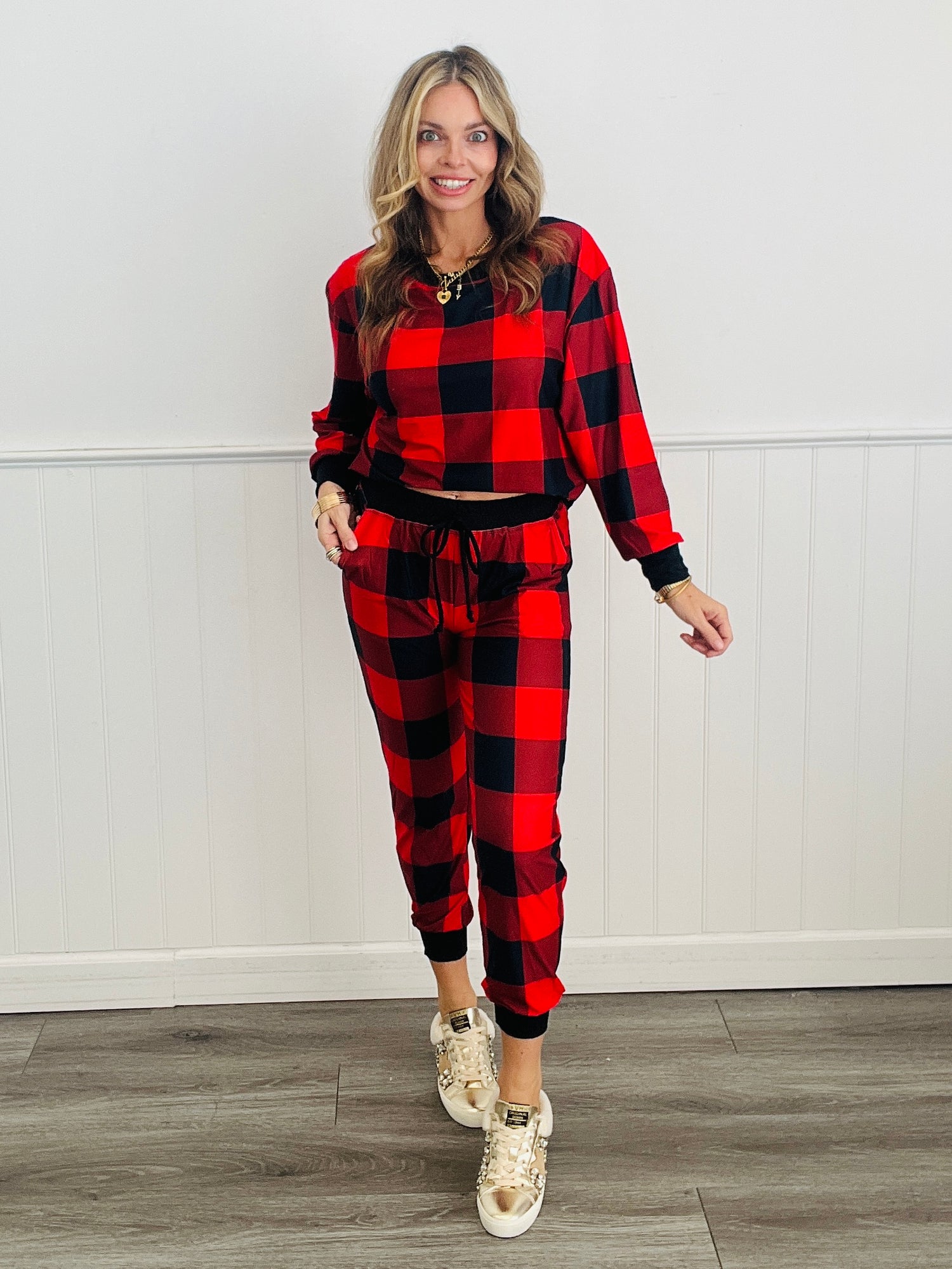 Get cozy in style with this playful Red Plaid Long Sleeve Top. Featuring a relaxed fit, dropped shoulders, and a comfy sweatshirt fabric, it’s perfect for layering or lounging. The classic crew neckline and vibrant plaid pattern add a fun twist to your everyday look. Embrace comfort without sacrificing flair!