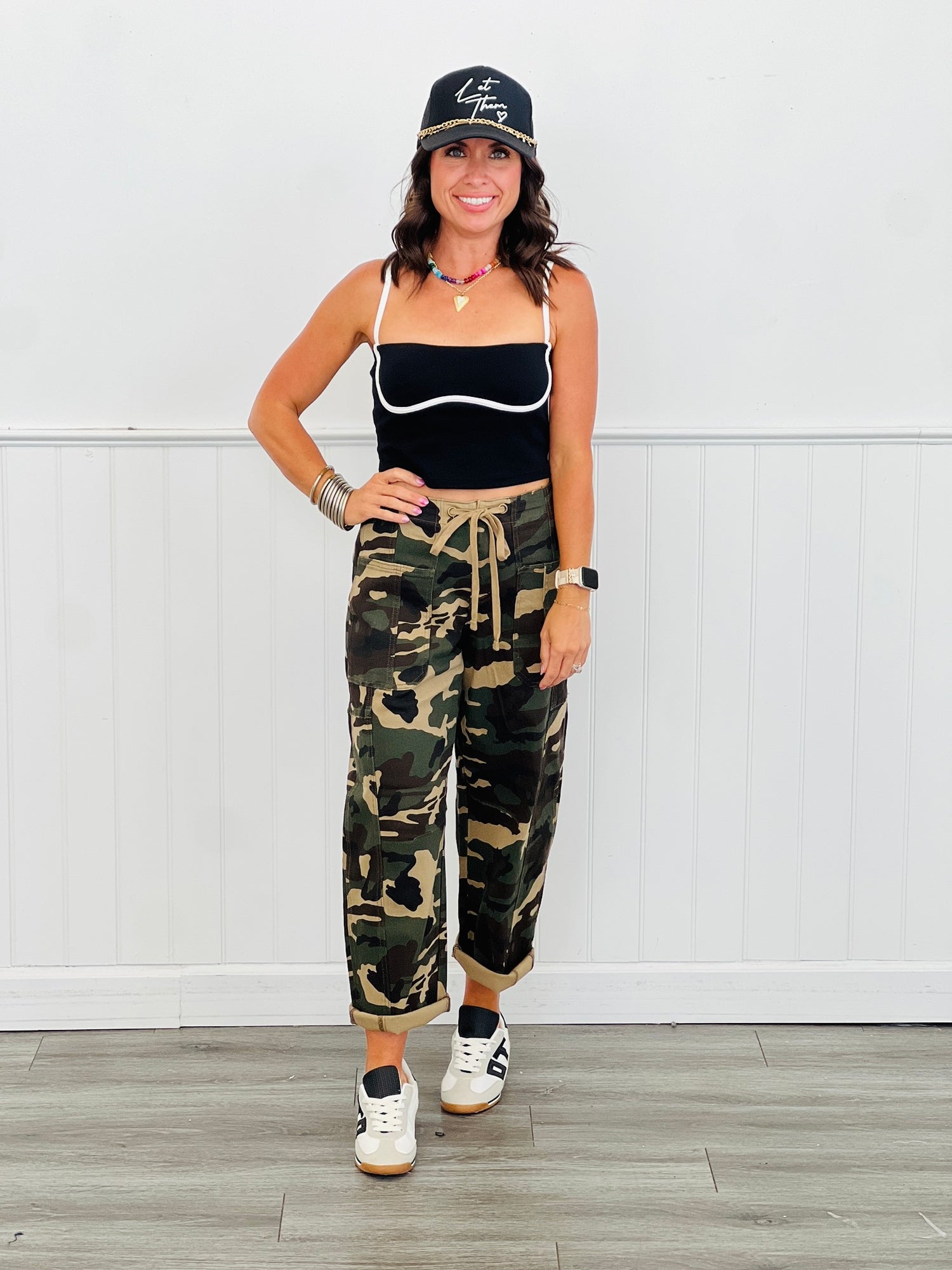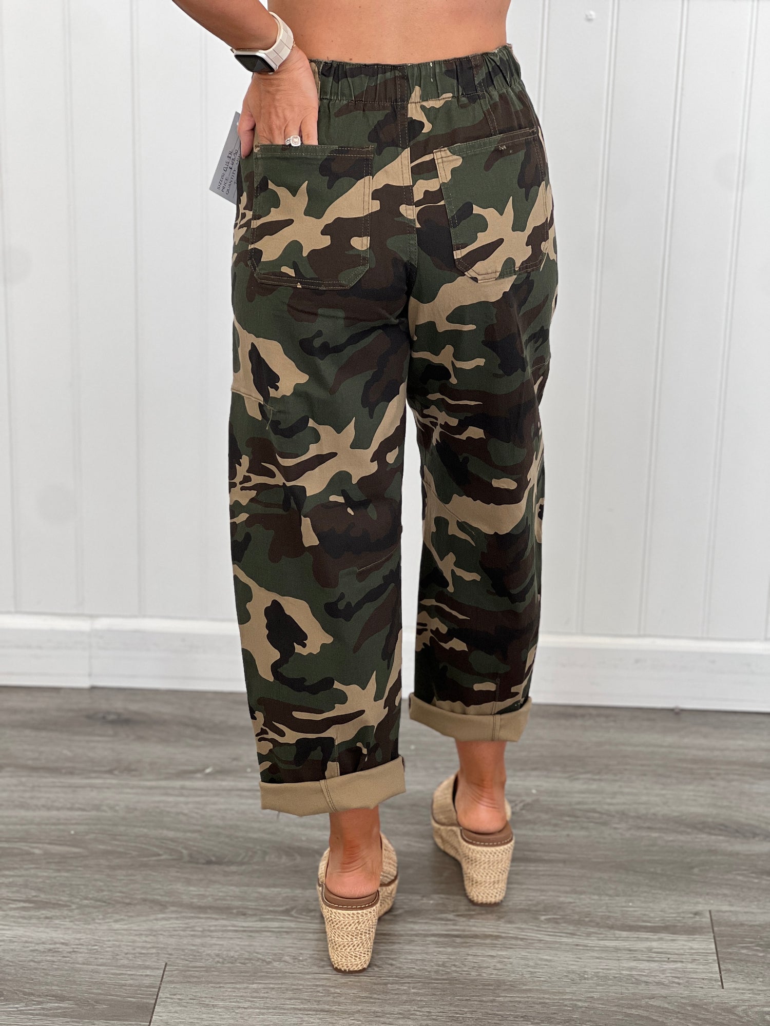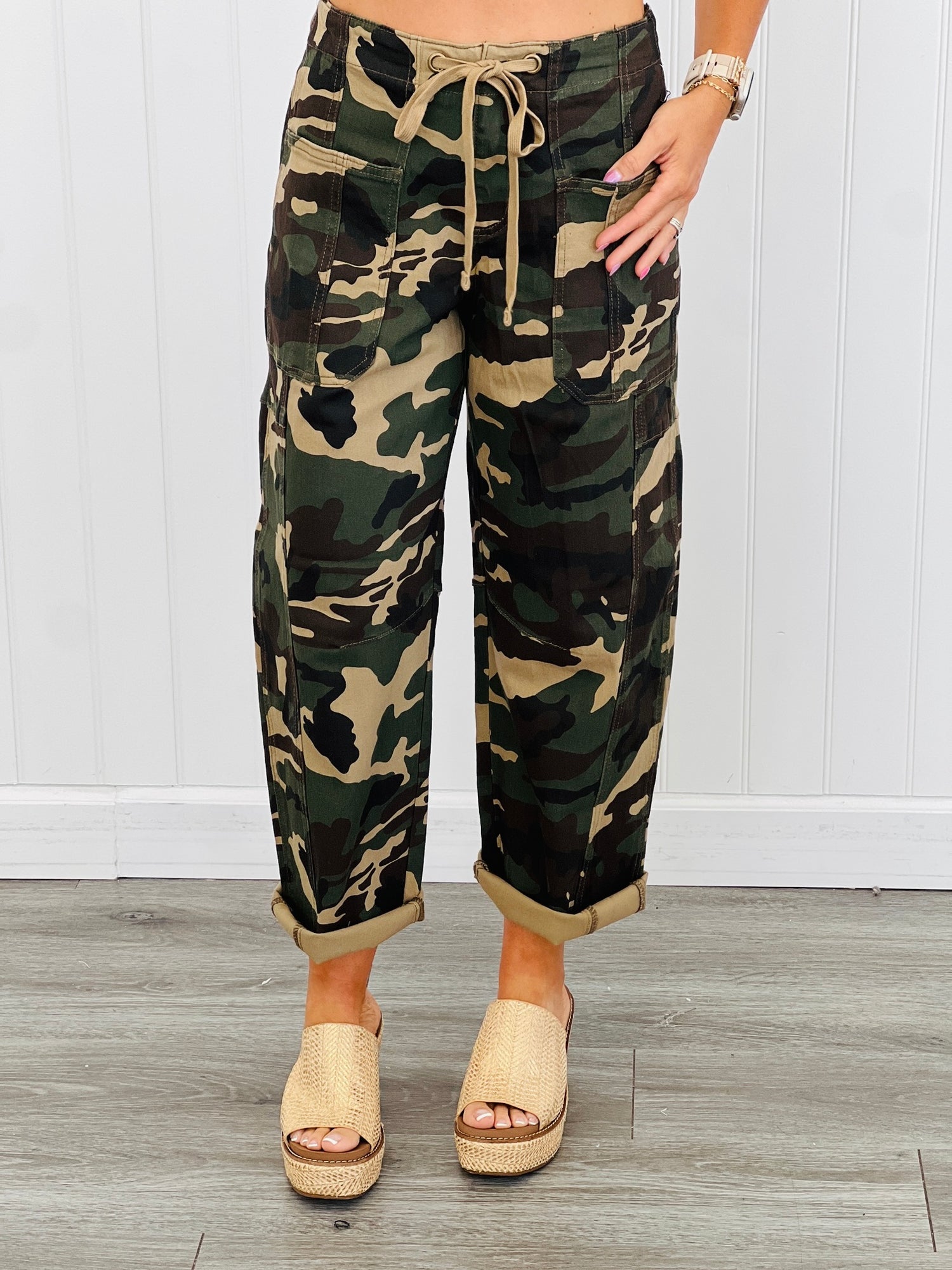 Get ready to add an on-trend fun element to your closet with these Risen Camo Walk In Nature Barrel Pants! These super cute pants feature a mid-rise fit and straight barrel legs, front and back pockets, inline cord belt, elastic back and front zipper closure.