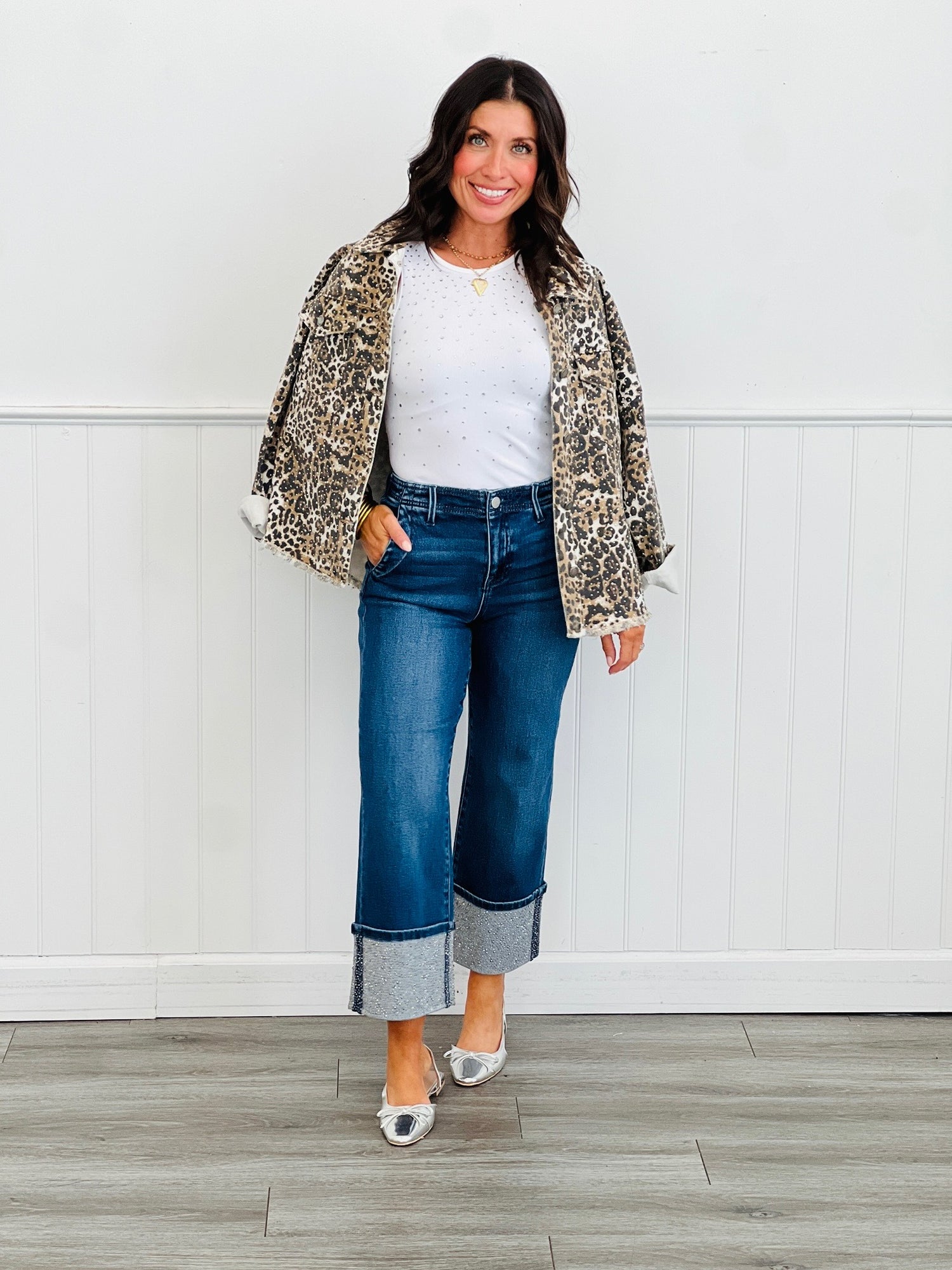 Risen Born To Sparkle Rhinestone Cuff Jeans (Reg & Plus)