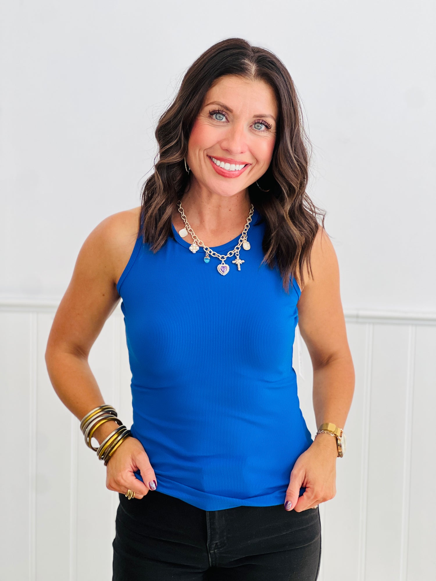 Add a splash of bold color with our Royal Blue Ribbed Round Neck Tank Top! This snug, ribbed knit hugs your curves while the rich royal blue hue keeps things lively. Whether layered or worn alone, this tank’s playful vibe and comfy fit make it your new go-to for sunny days and casual nights.