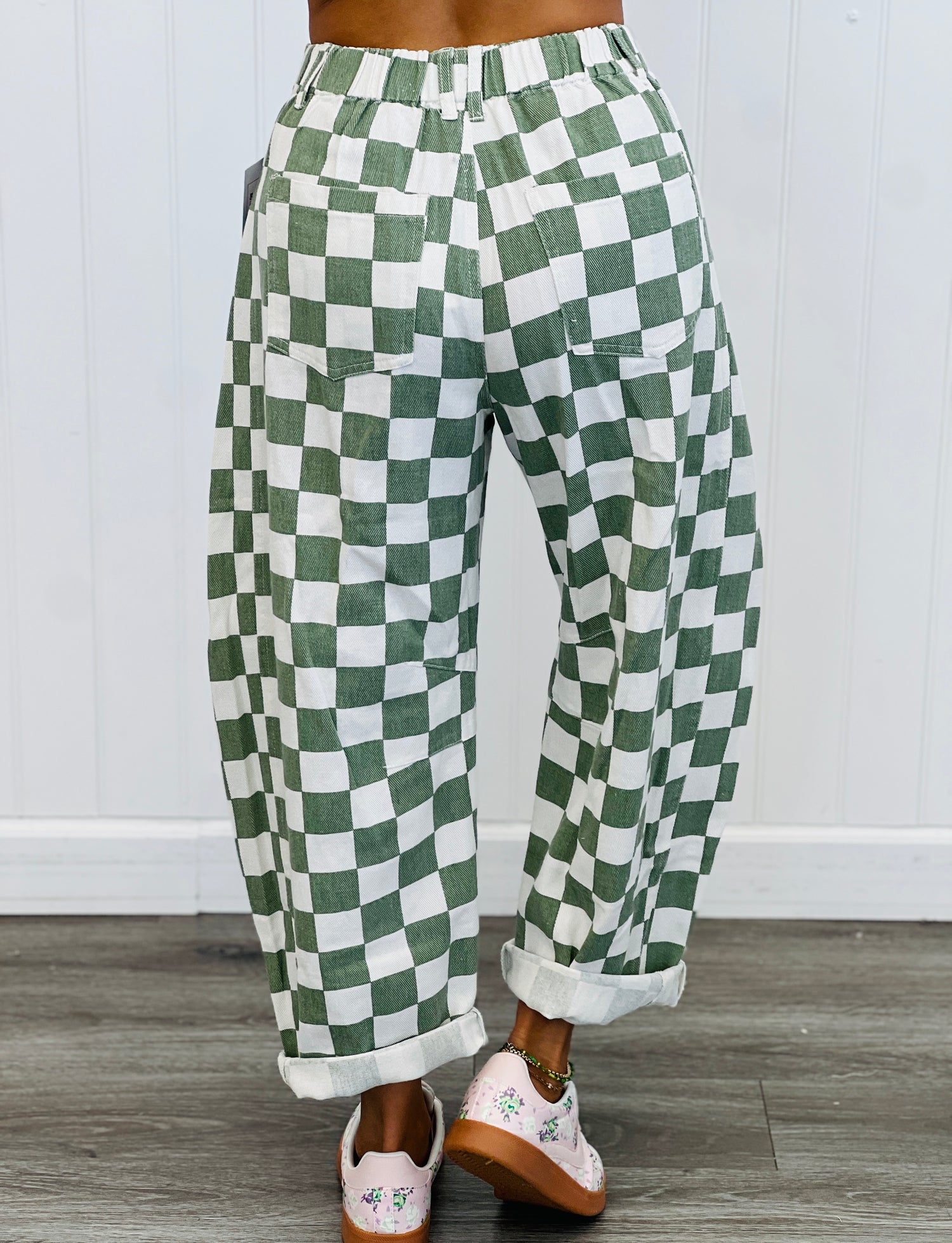 Sage Checkered Print Denim Barrel Pants (Reg & Plus)
