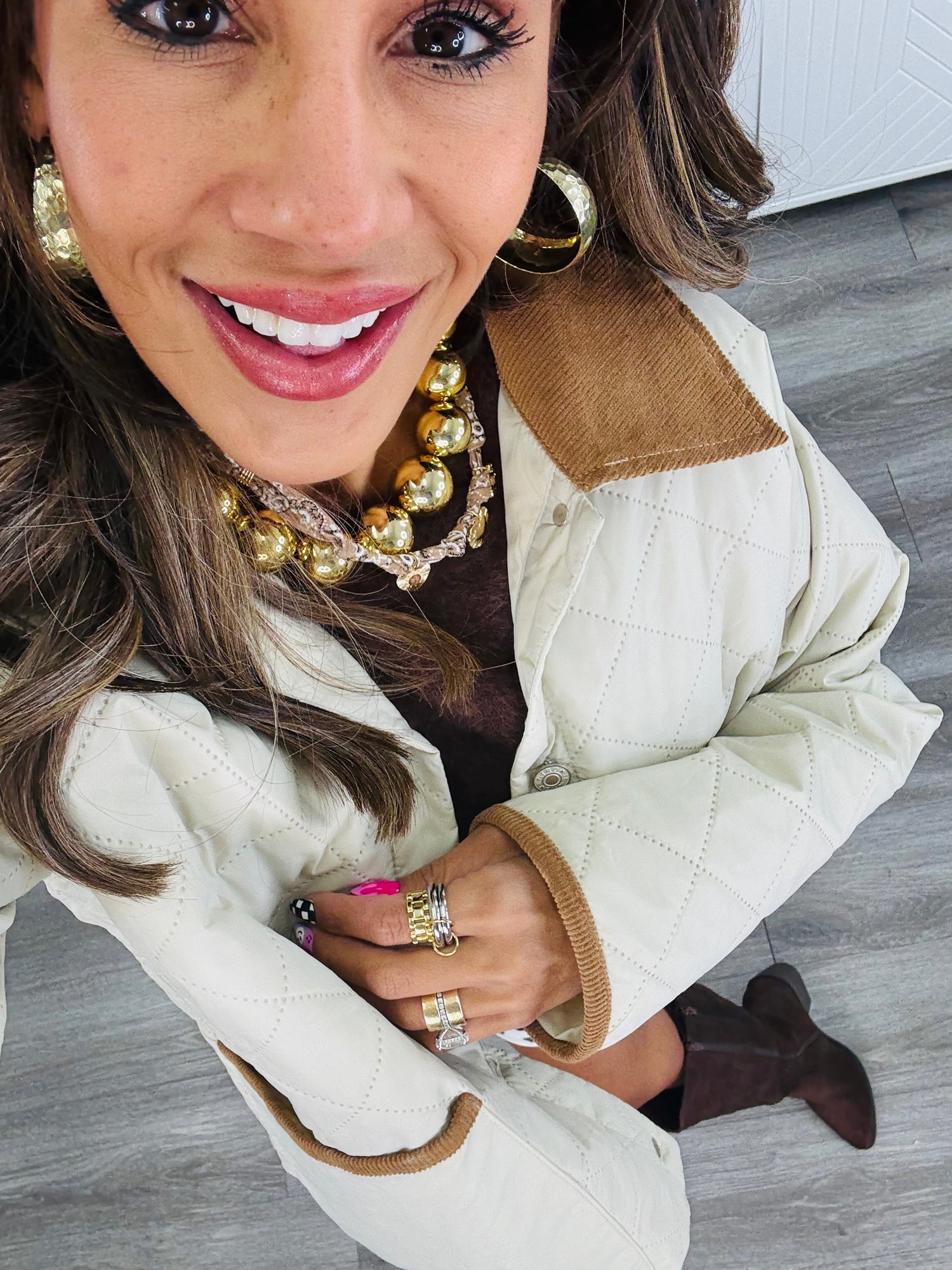 This Sand Quilted Button Up Jacket is your new go-to for effortless style and comfort. With its relaxed fit and playful contrast collar, it adds a fun twist to a classic look. Lightweight and unlined, it’s perfect for layering without the bulk. Plus, handy front pockets keep your essentials close. Woven and non-sheer, it’s a cozy companion for those breezy days when you want to stay comfy and cool.