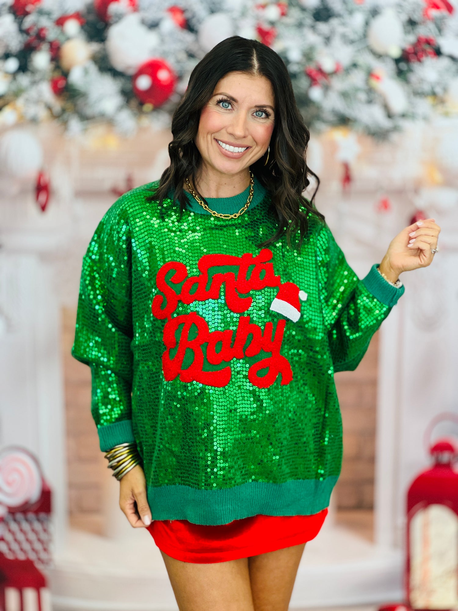 Green Santa Baby Sequin Sweater Top (Reg & Plus)