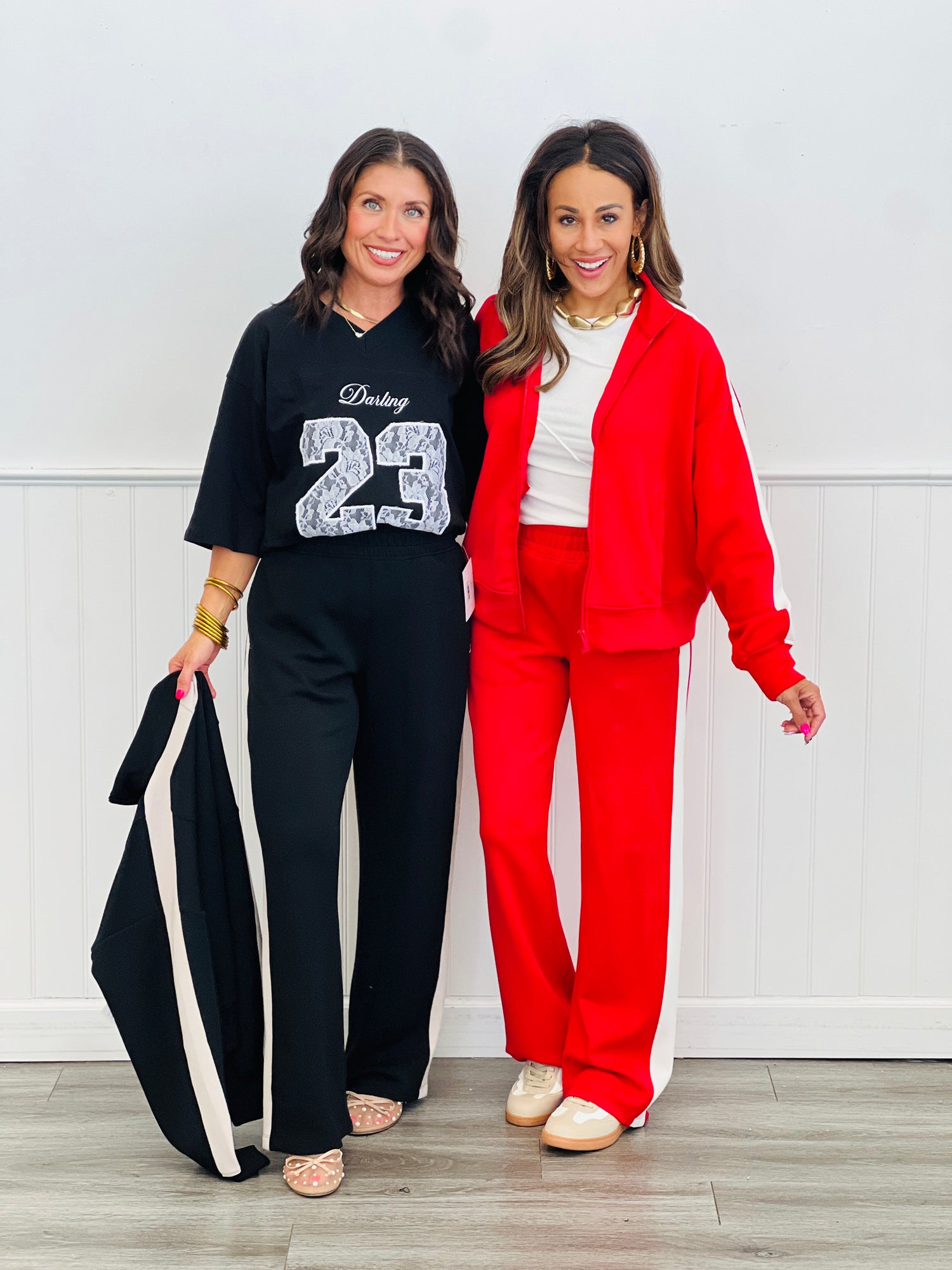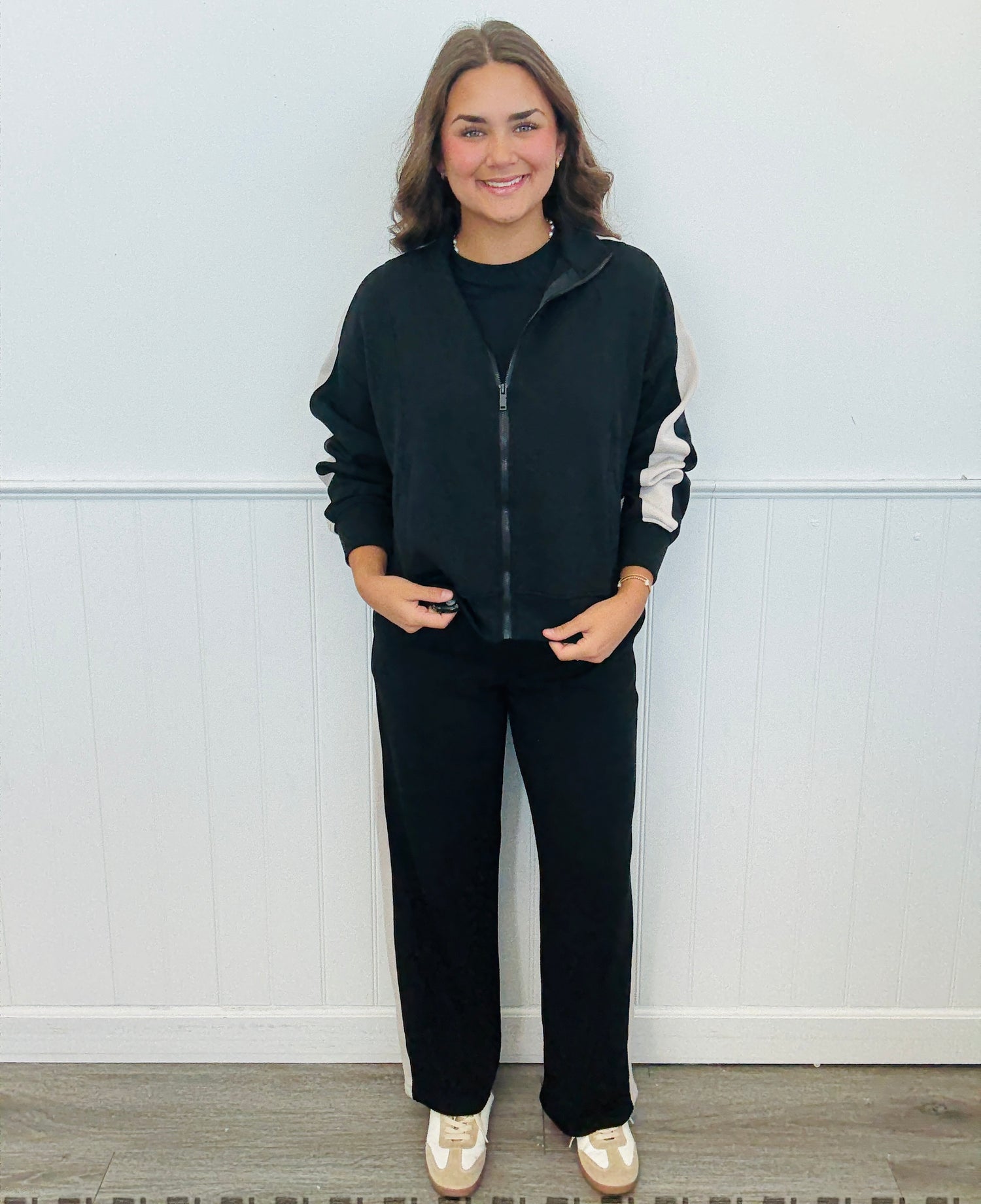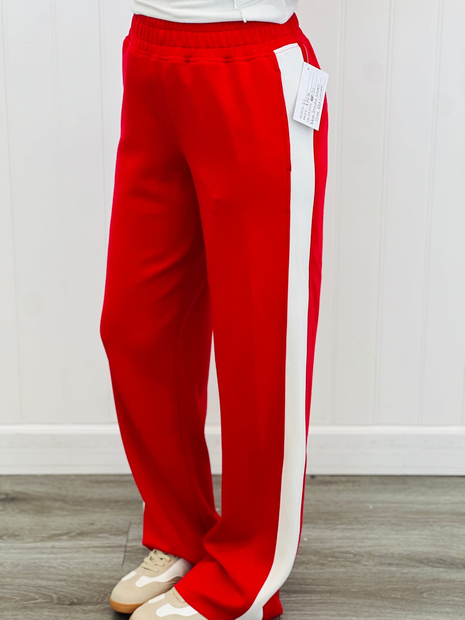 Elevate your active-chic style with this modal scuba active pants, crafted from silky smooth and lightweight fabric. Featuring sleek color contrast striping along the sides, it blends luxurious comfort with a sporty edge. Match to active jacket CAR3133.