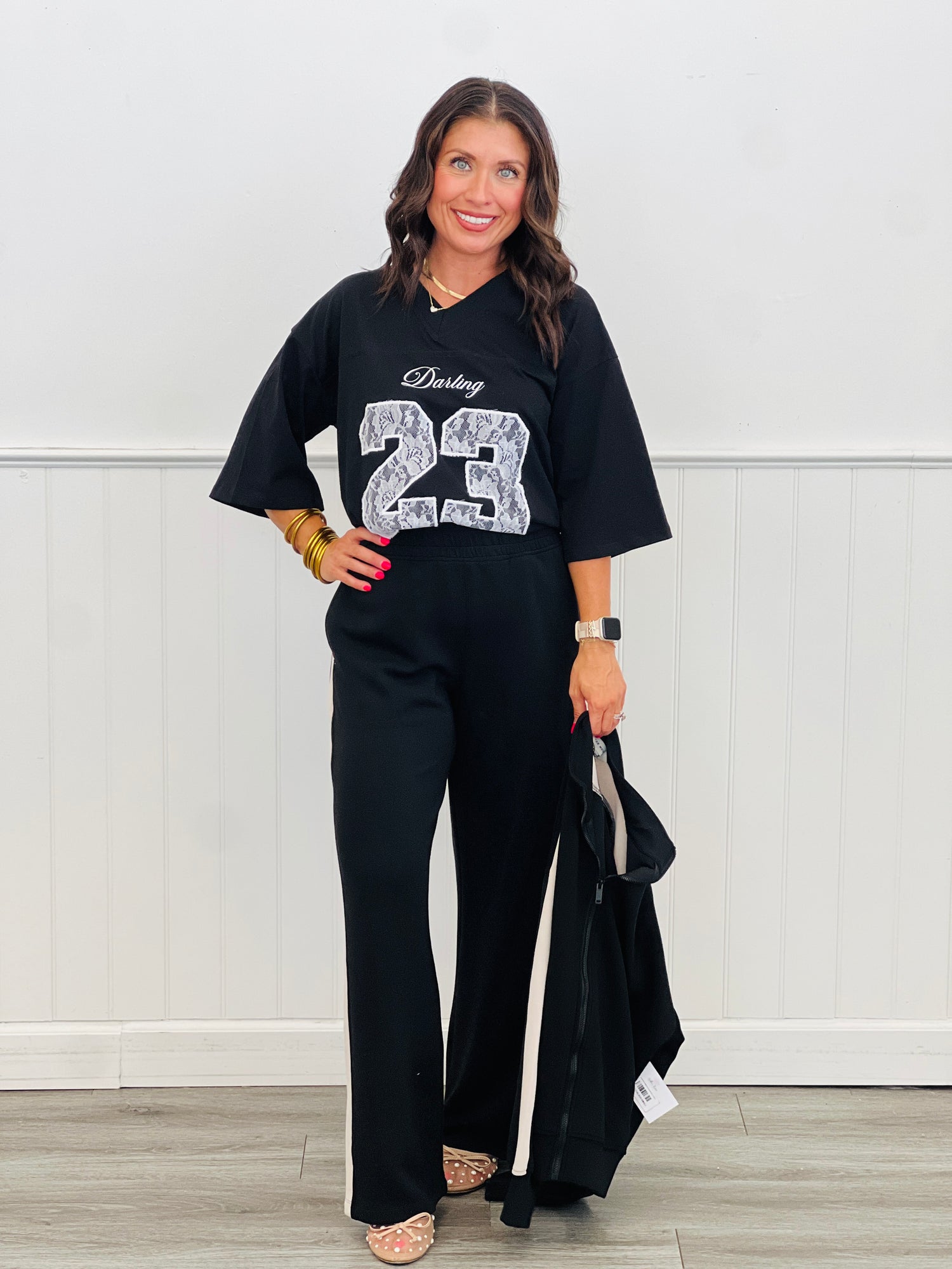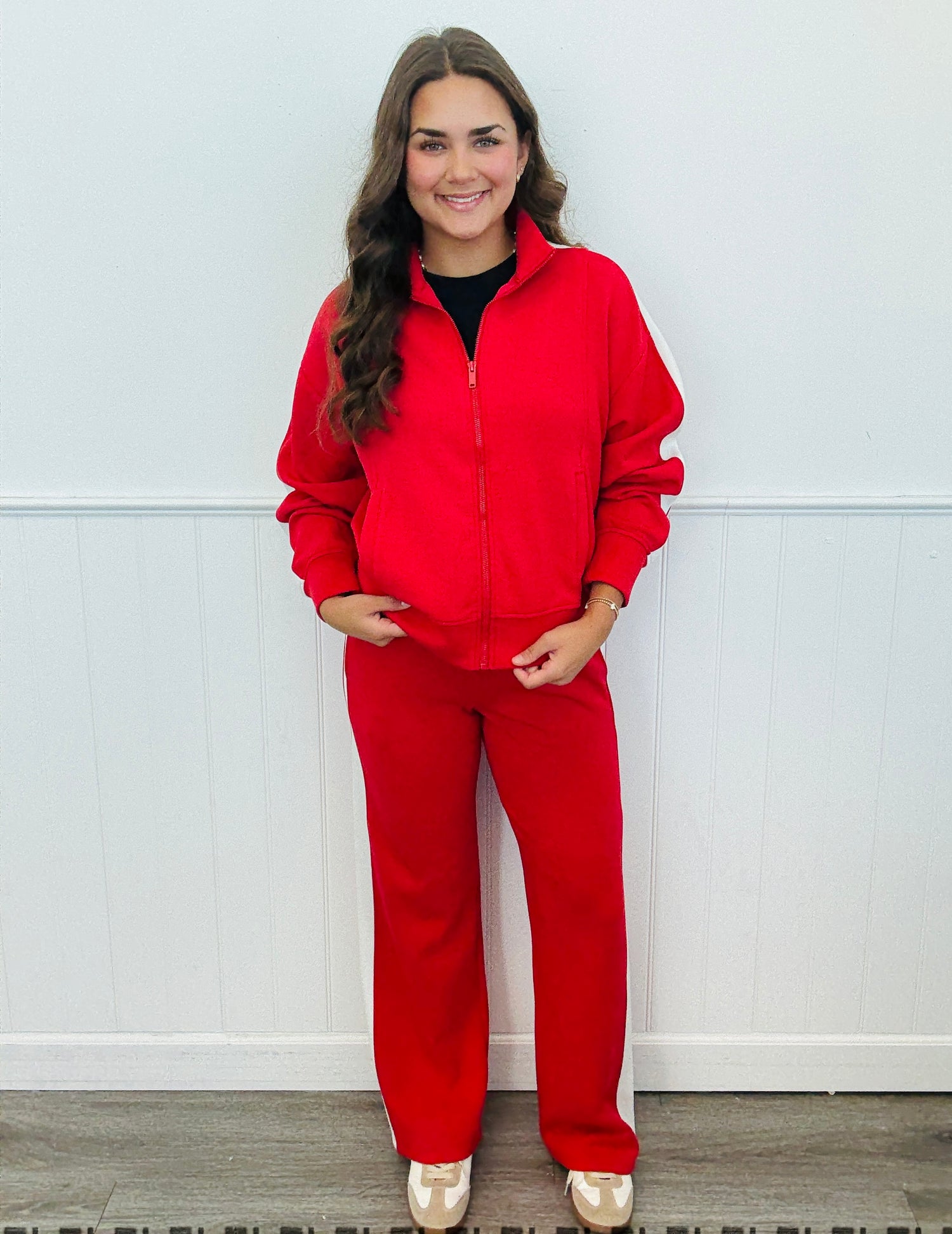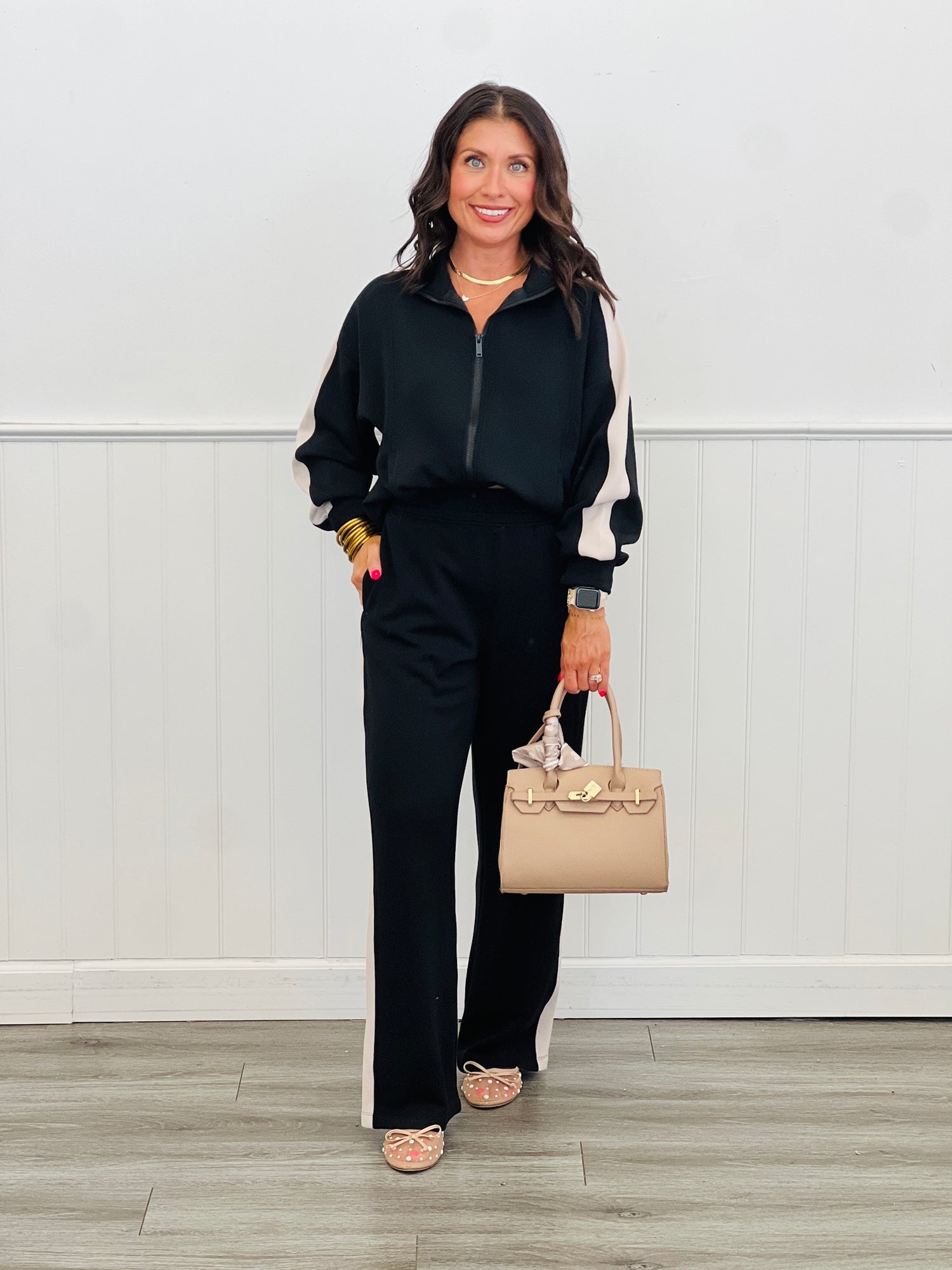 Elevate your active-chic style with this modal scuba active pants, crafted from silky smooth and lightweight fabric. Featuring sleek color contrast striping along the sides, it blends luxurious comfort with a sporty edge. Match to active jacket CAR3133.