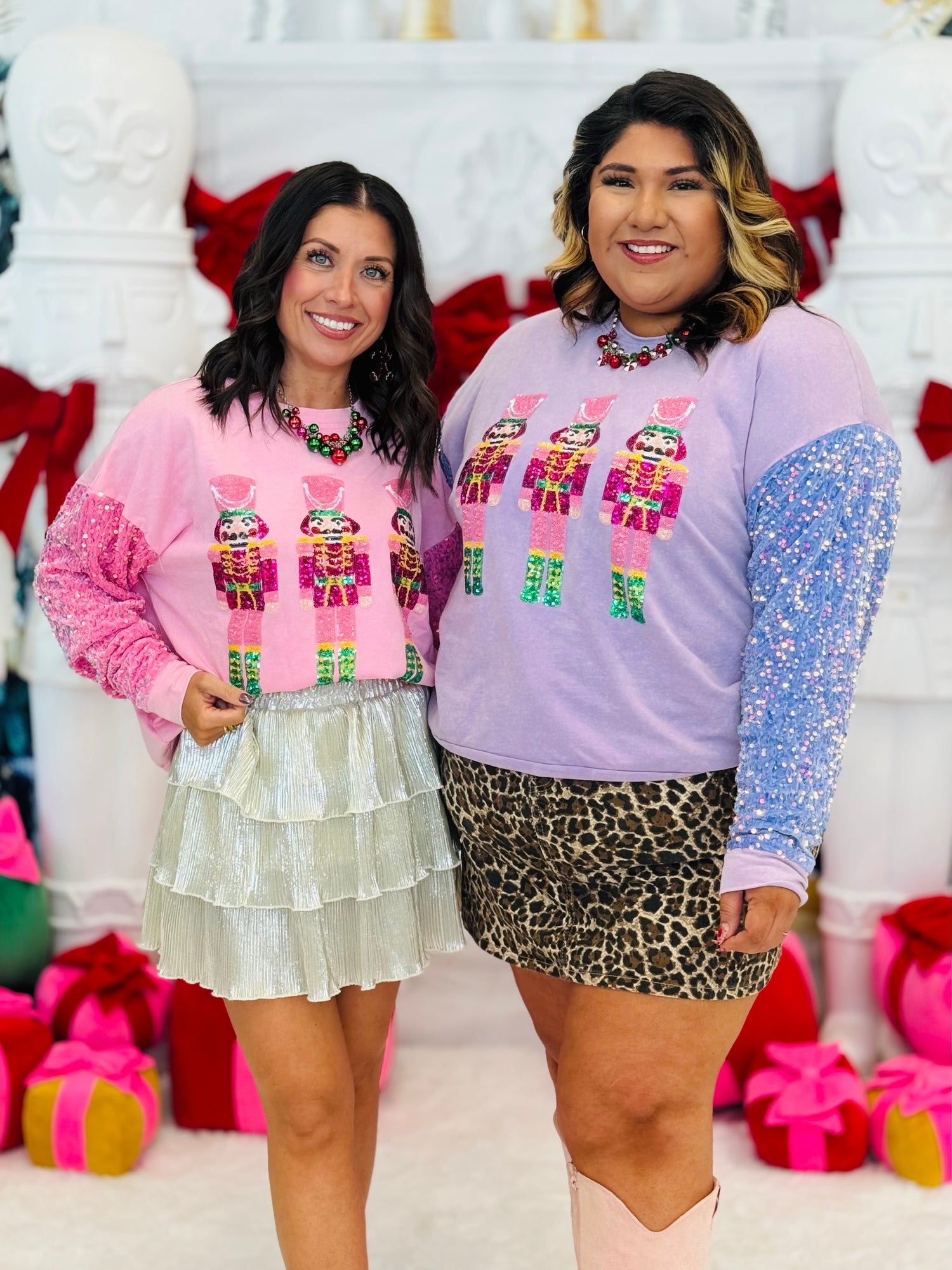 Sequin Nutcrackers Velvet Sleeve Sweatshirt (Reg & Plus)-2 Colors