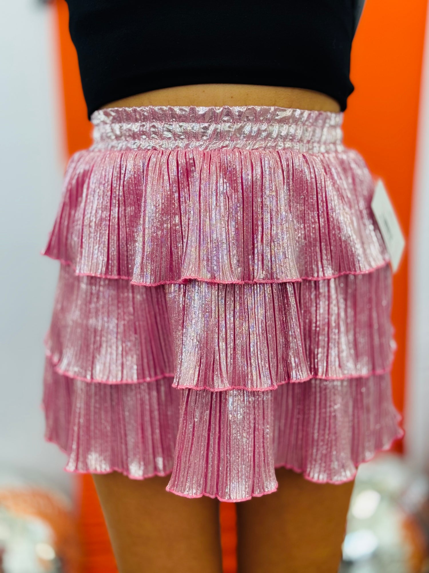 Add a flirty sparkle to your wardrobe with the Shimmer Ruffle Tiered Mini Skirt. Featuring playful tiers and a subtle shimmer, this skirt moves with you for a fun, flirty vibe. Built-in shorts provide comfort and confidence, making it perfect for dancing the night away or sunny day adventures. Available in three vibrant colors, it’s your new go-to for effortless style and comfort.