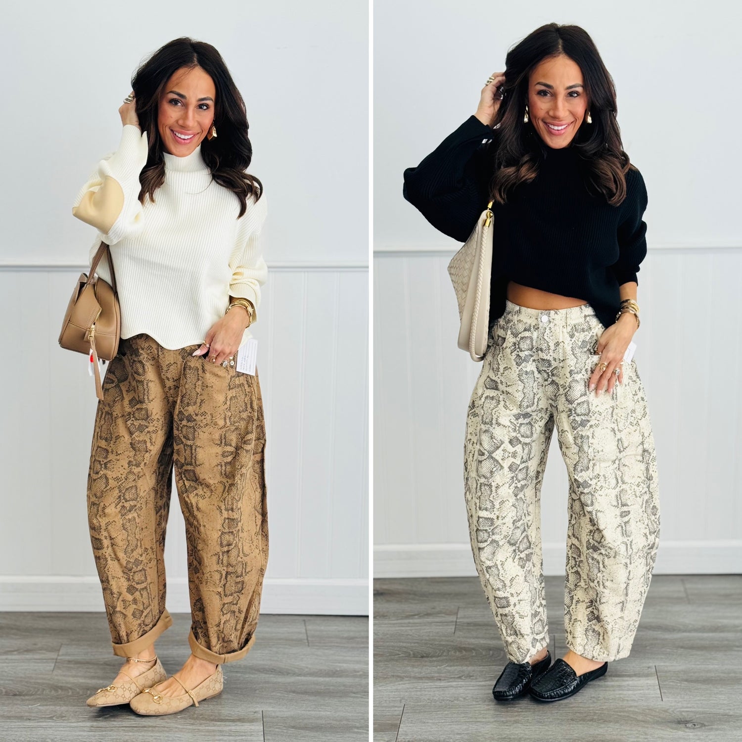 Snakeskin Print Barrel Pants (Reg & Plus)-2 Colors