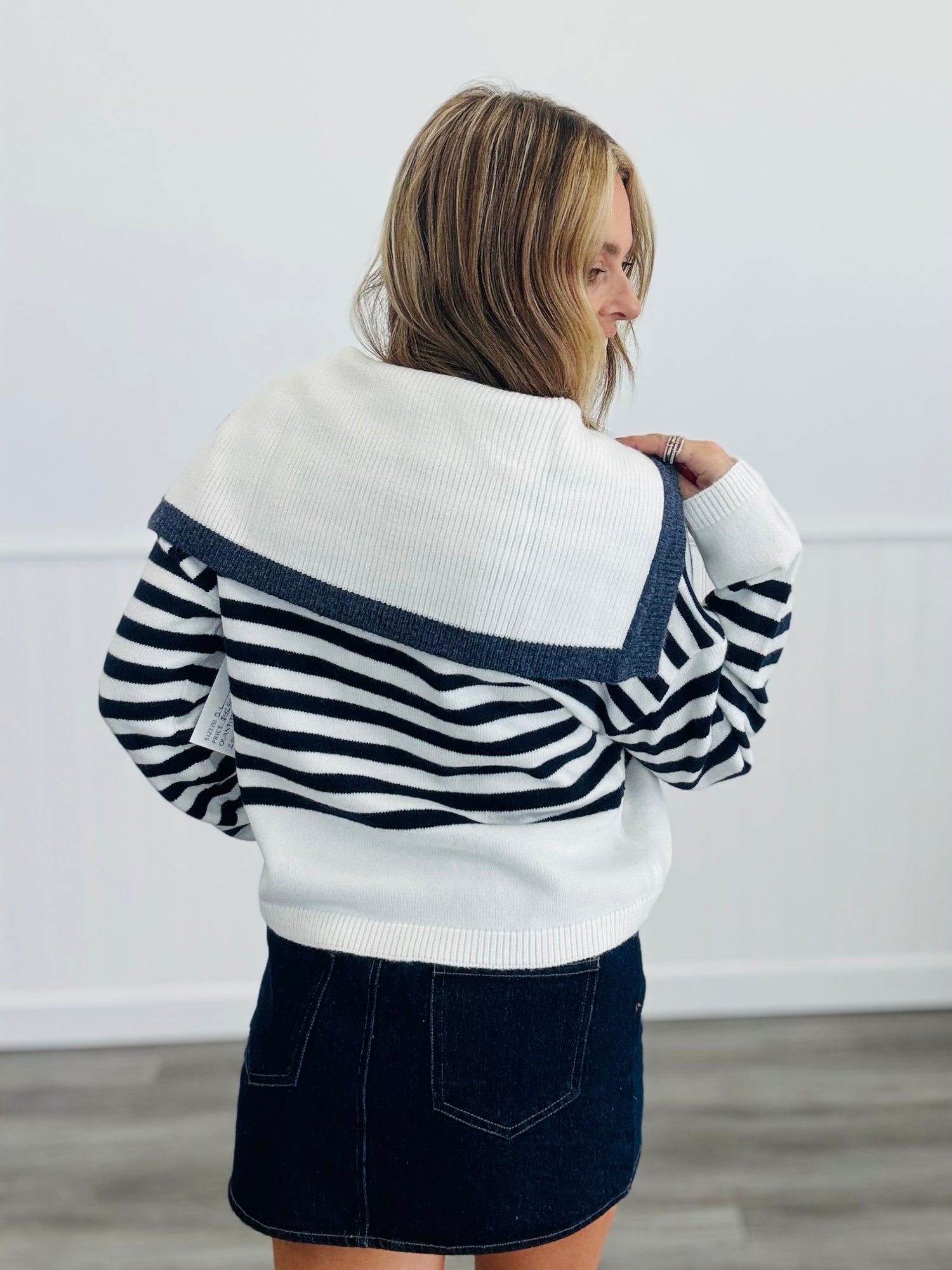 Striped Button Up Sailor Collar Sweater (Reg.)-2 Colors