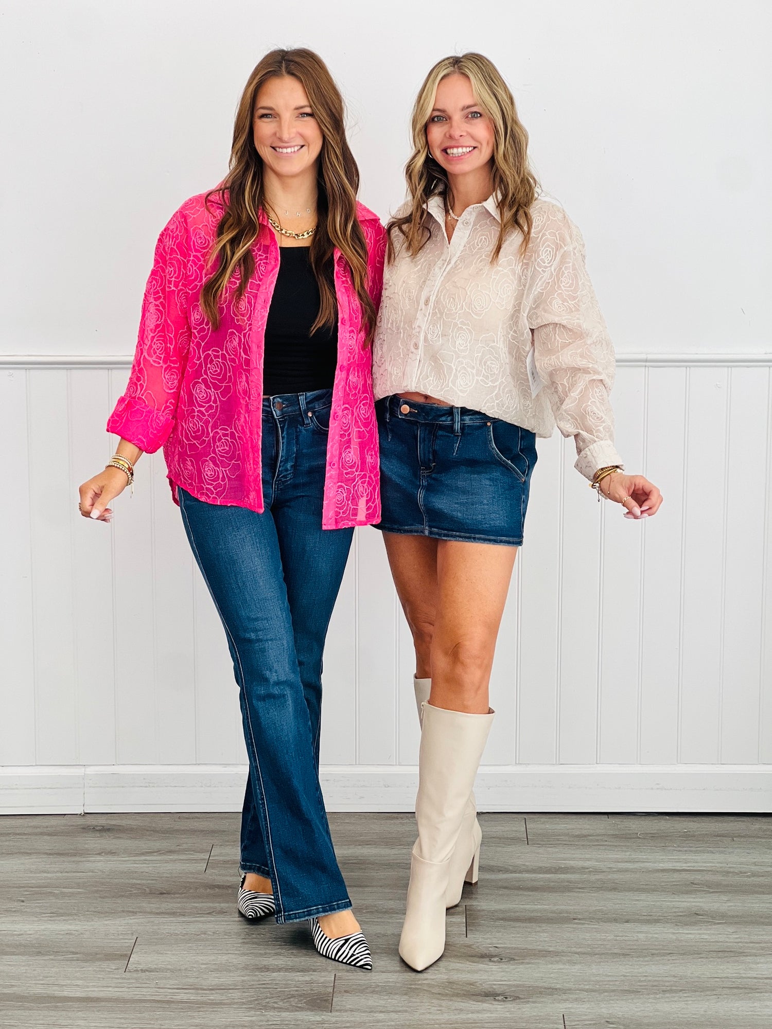 This elegant sheer shirt features a delicate floral pattern with shimmering accents, perfect for making a statement. The button-down design and long sleeves add a classic touch, while the lightweight fabric ensures comfort and breathability. Ideal for layering, it transitions effortlessly from casual outings to special occasions.