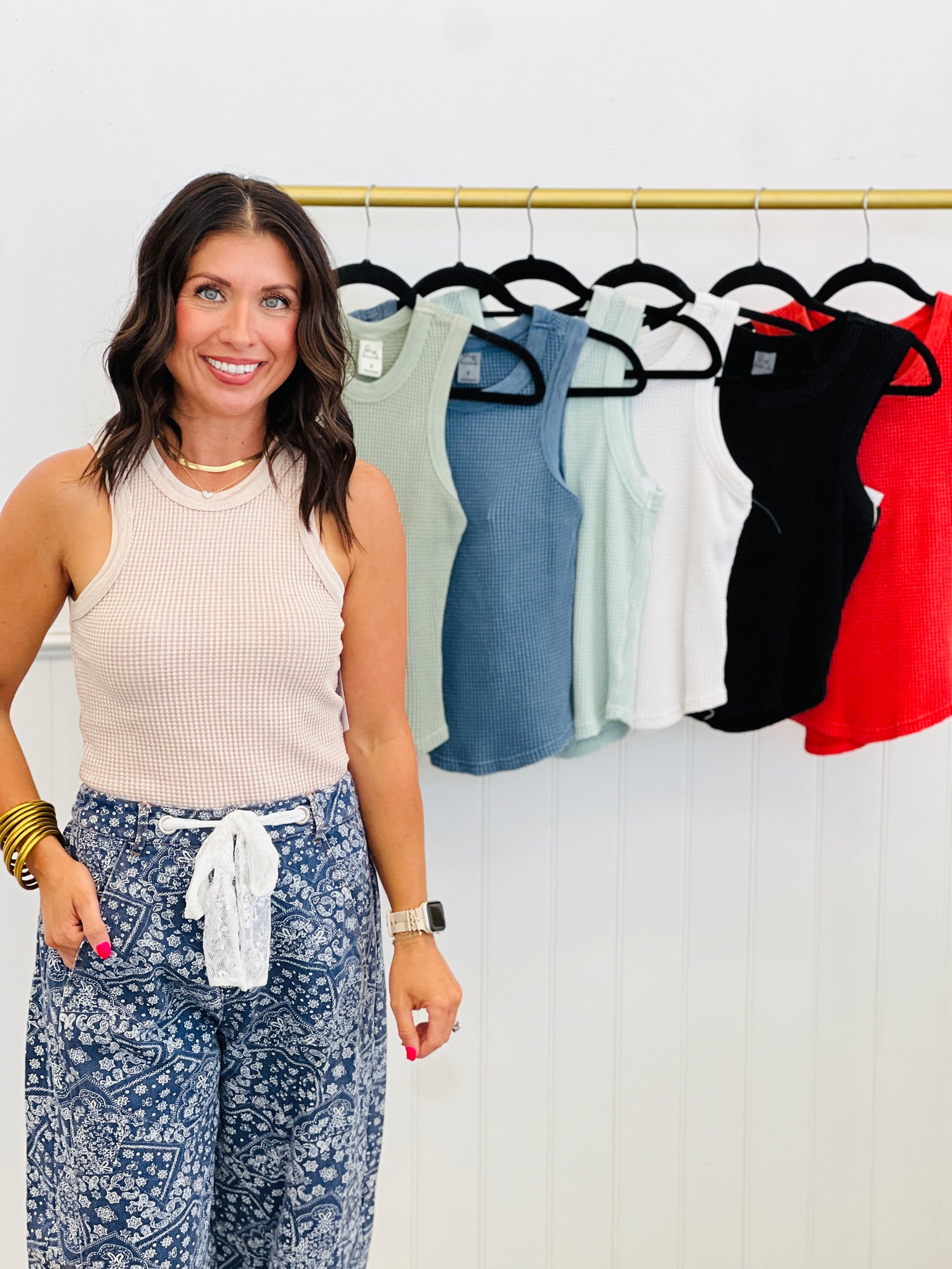 Textured Round Hem Tank Top (Reg.)- 7 Colors