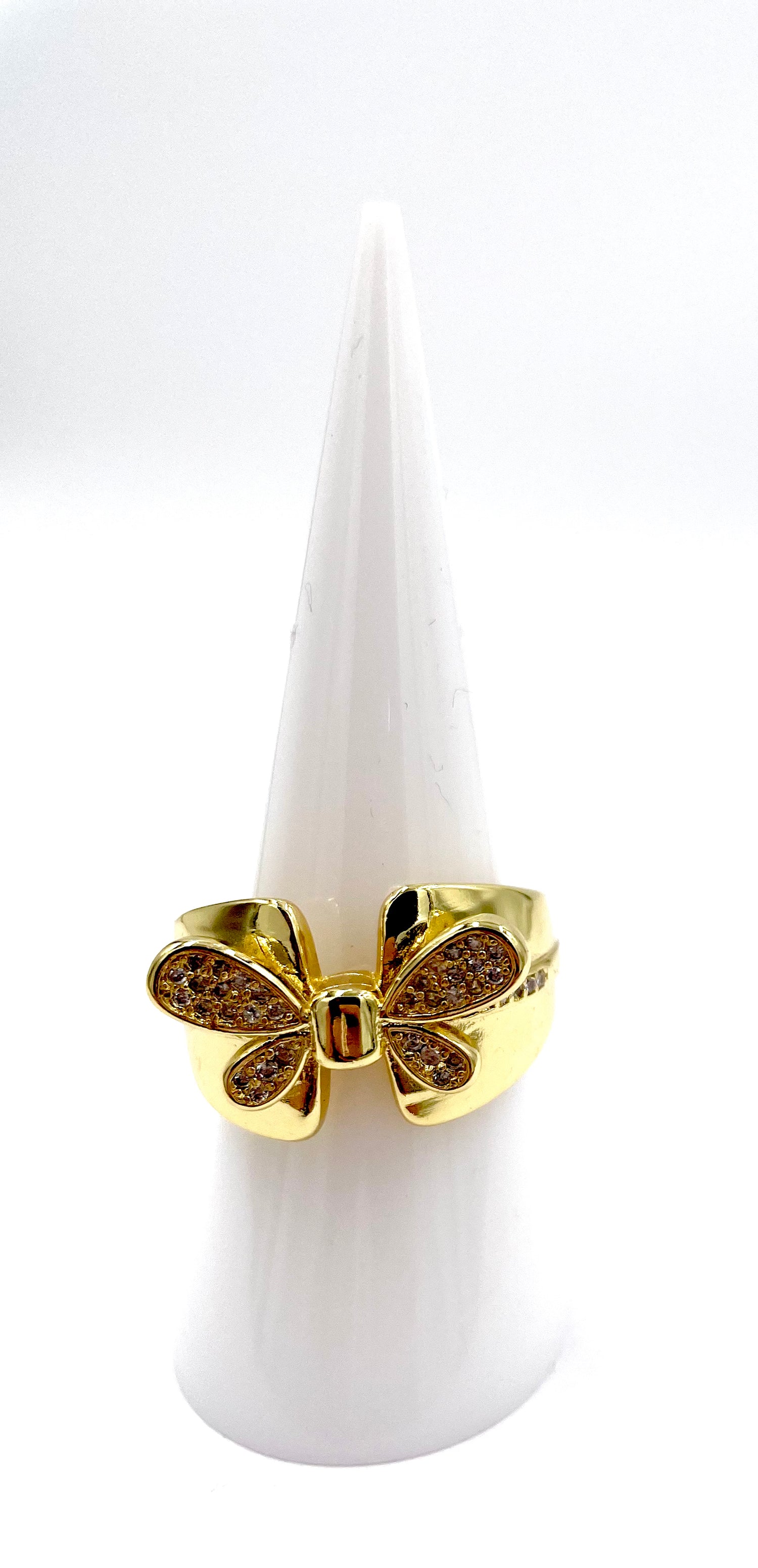 Introducing the blingiest butterfly ring around - a thick gold band adorned with a pave' filled butterfly! Bring some whimsy and sparkle into your life with this unique statement piece. Plus, the sturdy band ensures you won't have to worry about losing your fluttery companion.