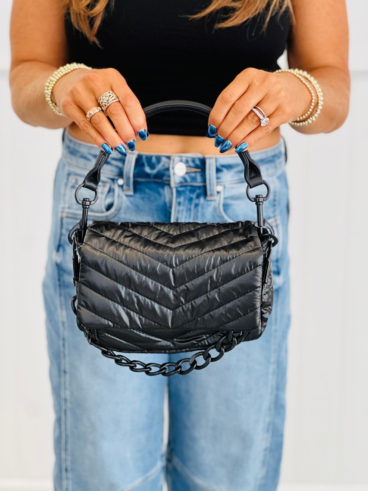 Add a pop of fun to your outfit with The Melodie Puffer Handbag! This small, puffer-style bag features a comfy handle and a sleek black chain strap, making it perfect for hands-free adventures or stylish grabs. Lightweight yet eye-catching, it’s an easy way to carry your essentials with a playful twist. Available in three trendy colors to match your mood!