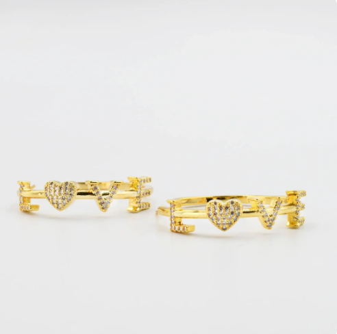 Add a dazzling twist to your style with the TJ - Amour Hoop from Treasure Jewels. This playful hoop spells out "love" in sparkling crystals, catching the light with every turn. Choose between radiant gold or sleek silver to match your mood and make a statement that’s both fun and fabulous. Perfect for adding a little sparkle and romance to any look!