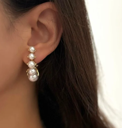 Luminous ivory pearls set in gold in ascending sizes form this delightful crawler.