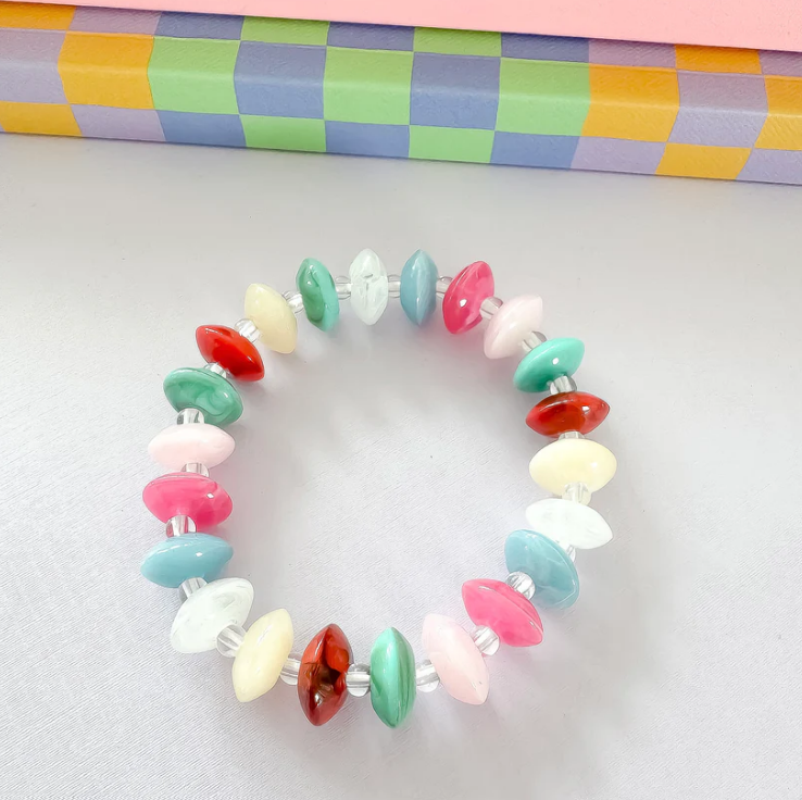 Sweet, colorful, and totally irresistible- the Rainbow Sorbet Bracelet is pure sunshine for your wrist! A swirl of pastel and bright marbled beads makes this stretchy bracelet the perfect pop of happy for any outfit. Wear it solo for a splash of color or stack it up to create your own playful party. It's basically a scoop of pure joy, no spoon required!