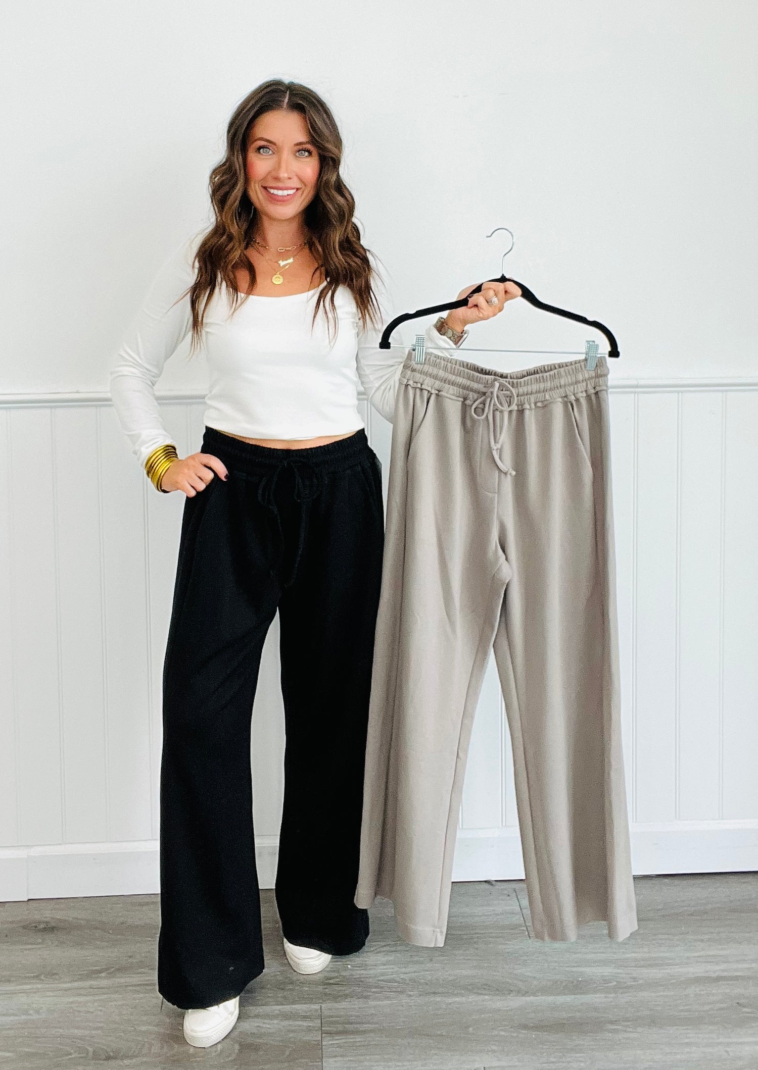 High Waist Wide Leg Pants (Reg & Plus)-2 Colors