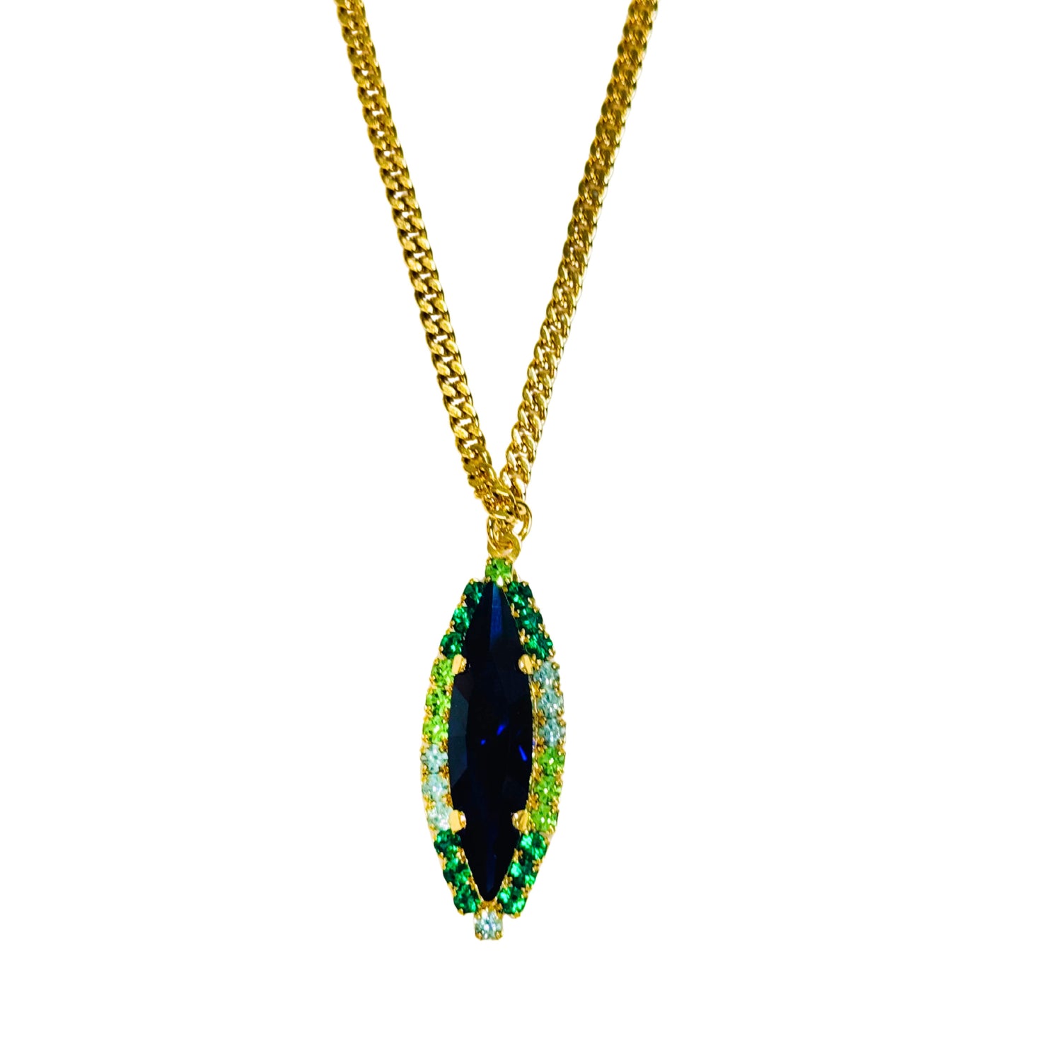 fThe Alyssa Necklace in Indigo is your new go-to for effortless glamour. This beauty features stunning high-quality jewels set in warm antique gold, making it the perfect piece to dress up any outfit—or dress down your everyday look. Whether you're stacking it with other favorites or letting it shine solo, this versatile necklace adapts to your style and mood. Timeless elegance meets modern flexibility in one sparkly package.