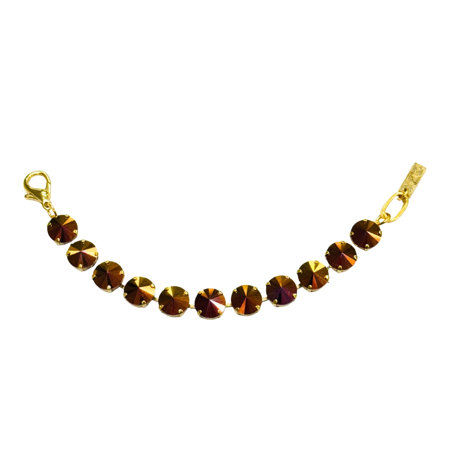 Add a dazzling touch to your wrist with the TOVA - The Croatia in Volcano Sparkling Stud bracelet! Featuring antique gold plating and sparkling crystals, this 7-inch beauty shines with a star-like glow. Crafted from durable brass and made in Canada, it’s the perfect playful accessory to brighten up any outfit.