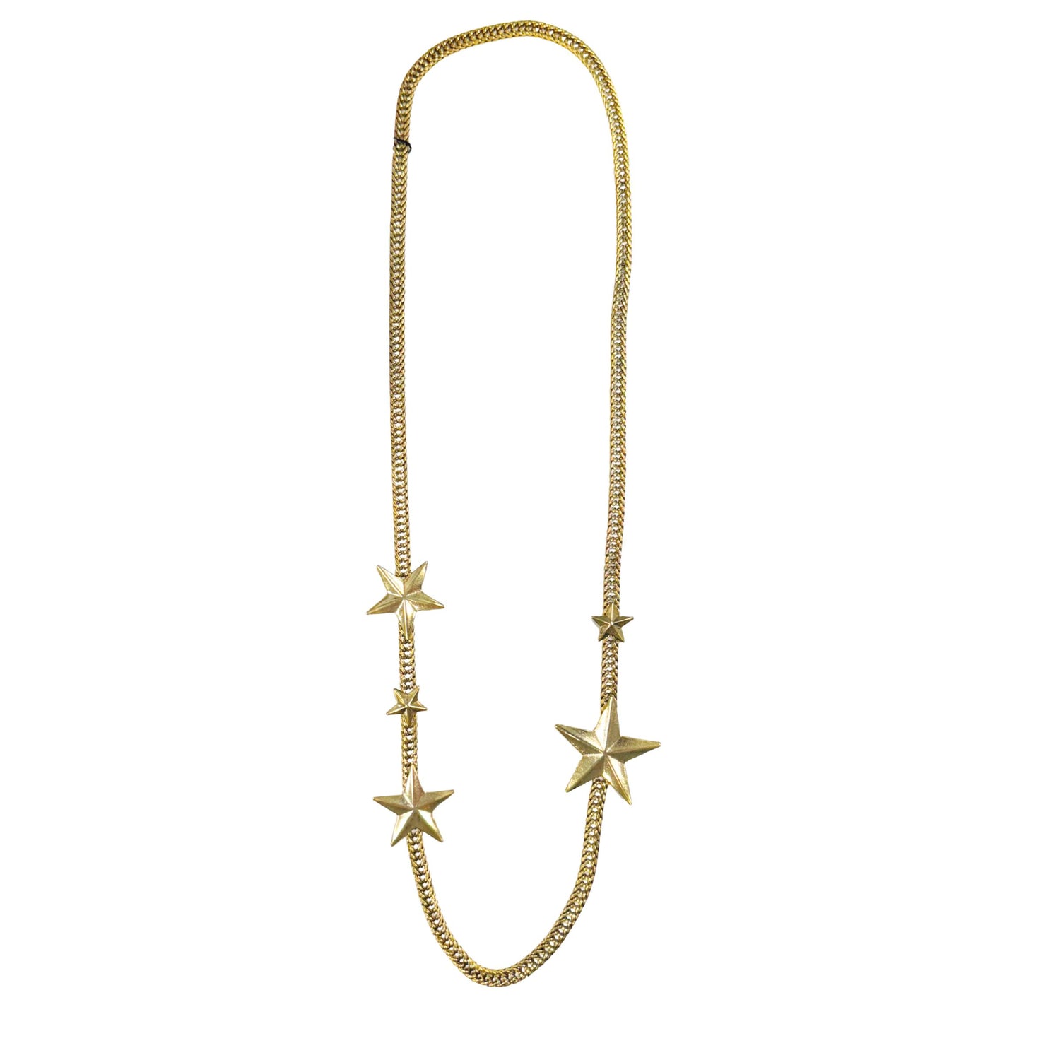 Add a touch of whimsy to your look with the TOVA Oklahoma Necklace in Gold. Featuring a delicate gold braided chain adorned with charming gold stars, this necklace brings a playful sparkle to any outfit. Perfect for layering or wearing solo, it’s a fun way to shine every day.