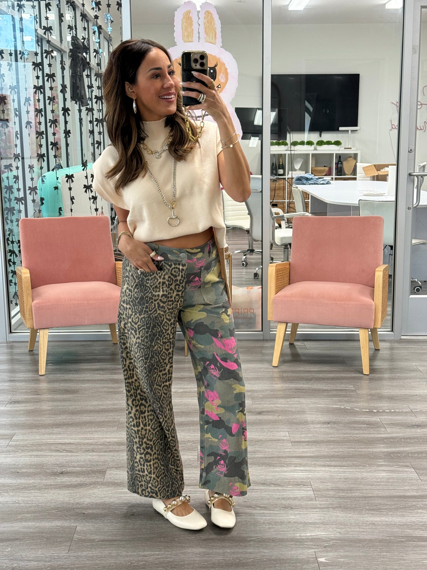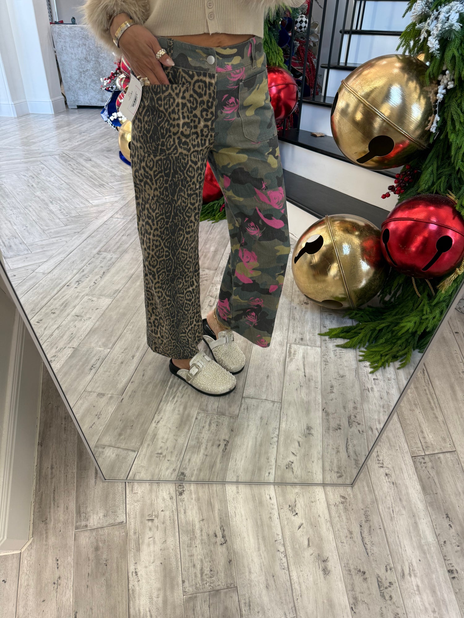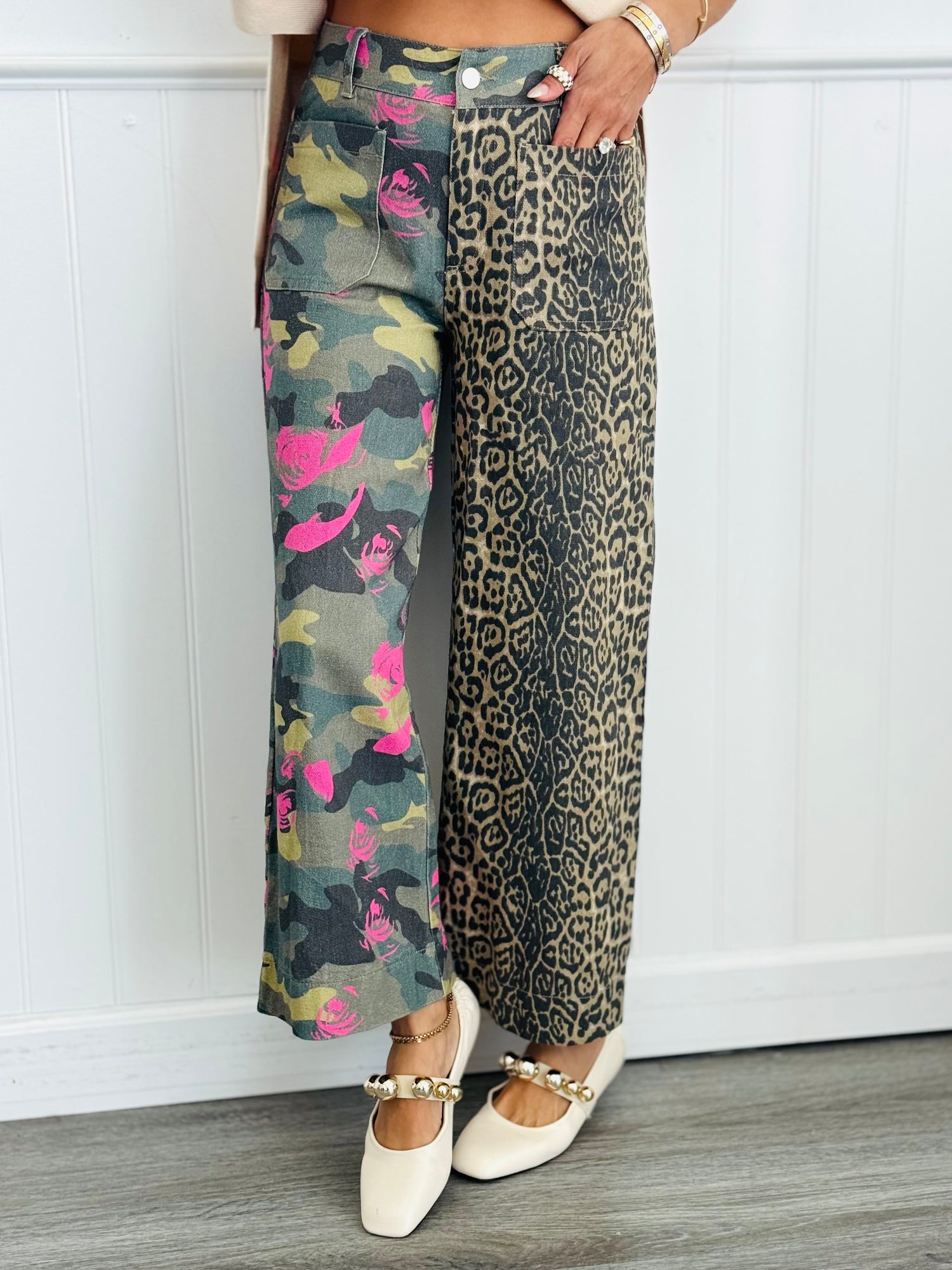 Make a bold statement with these Untamed Bloom Pants, where wild meets whimsical. Featuring three eye-catching prints—leopard, camo, and floral—split down the middle, these pants are anything but ordinary. Functional belt loops keep everything in place while you rock this daring color-block design. Perfect for fashion-forward folks who refuse to choose just one vibe. You'll find this WR x Like Love collab EXCLUSIVELY at Walker Rose Boutique!