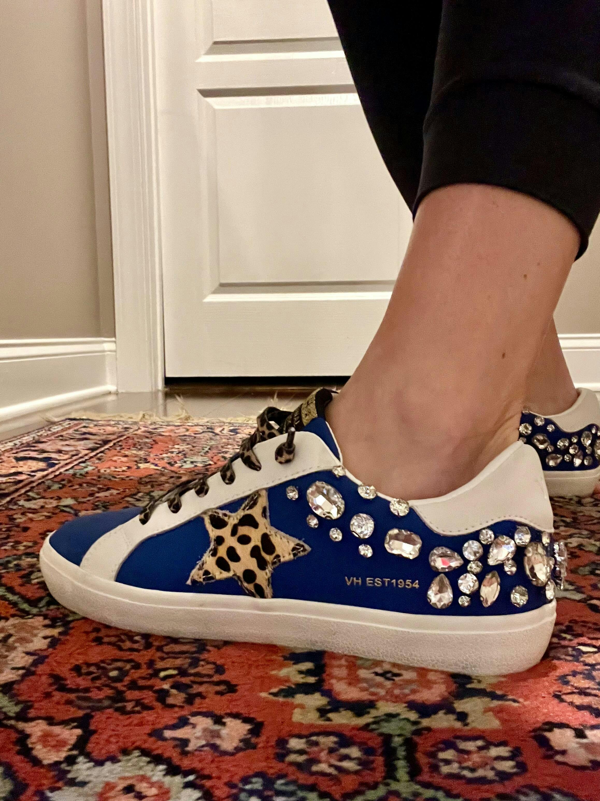 Put your best foot forward in these Vintage Havana x Walker Rose Exclusive Born To Shine Crystal Sneakers. With a stunning royal blue color and chunky crystal detailing on the heel, you'll be sure to turn heads wherever you go. PLUS trendy leopard laces to add some edge. Get these gorgeous exclusive sneakers only at Walker Rose!!