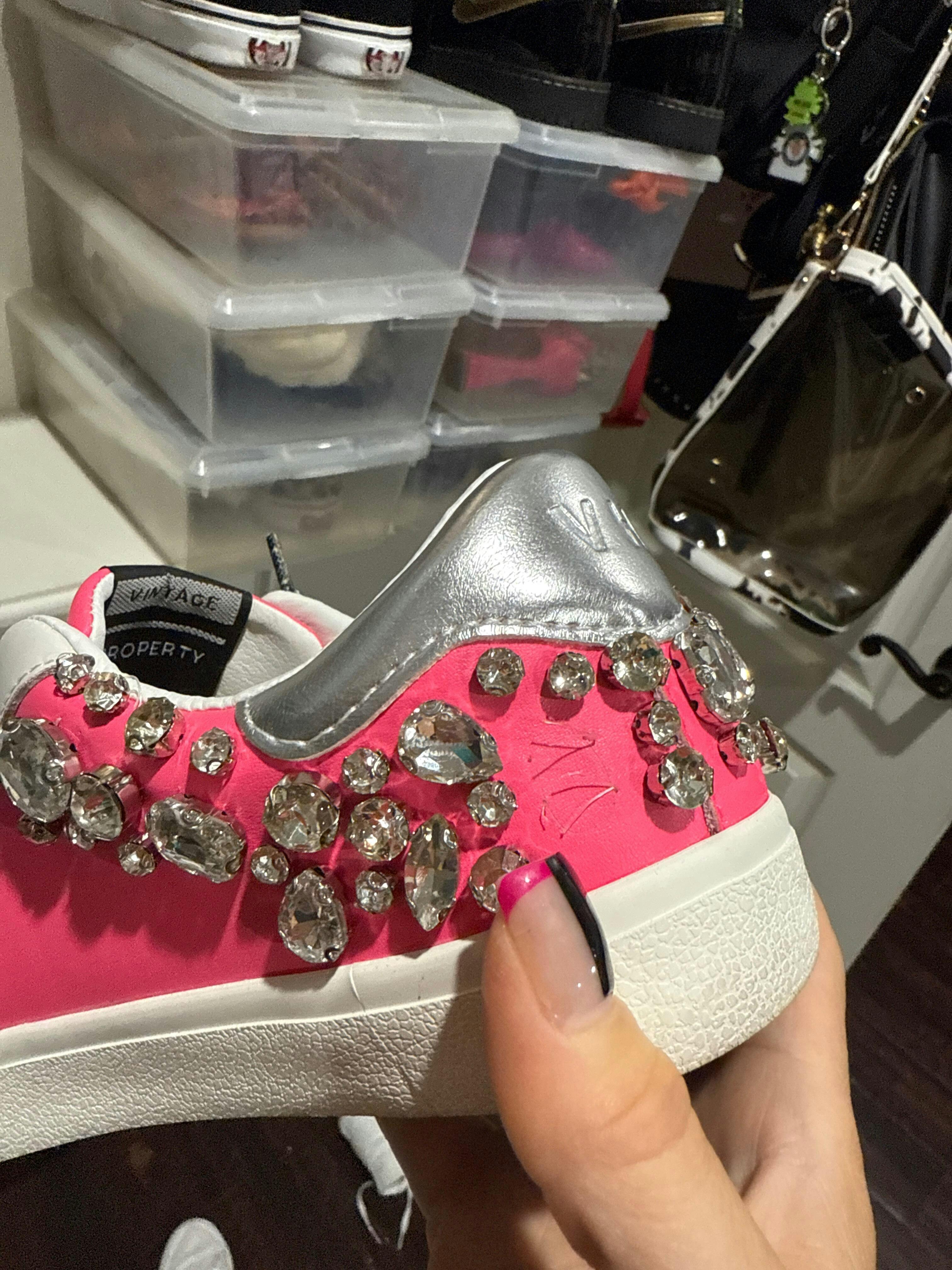 - Please note: each crystal is individually hand stitched on these sneakers! Take care when handling, storing, and wearing.