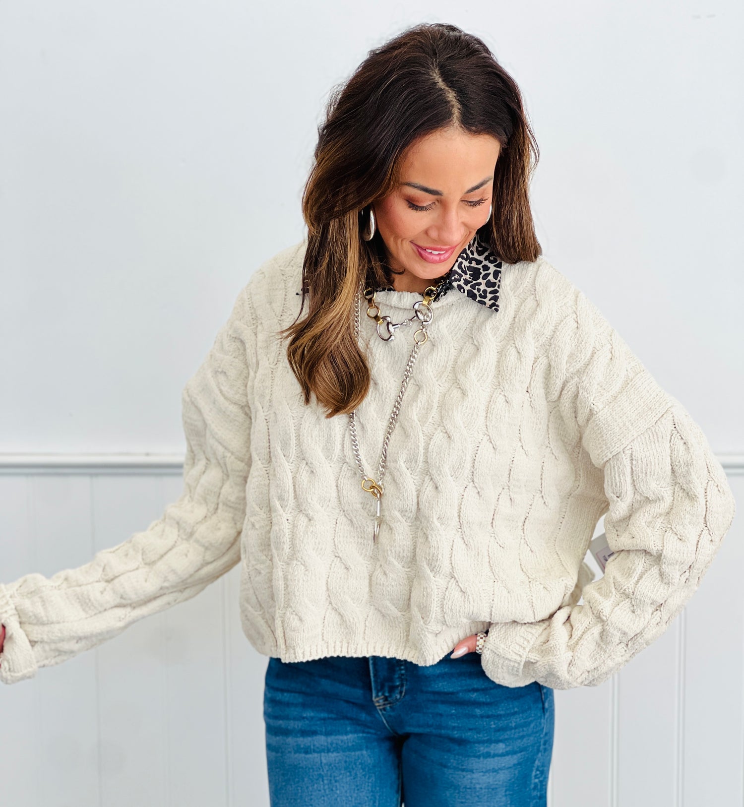 Whip Cream Cable Knit Sweater Top (Reg.)