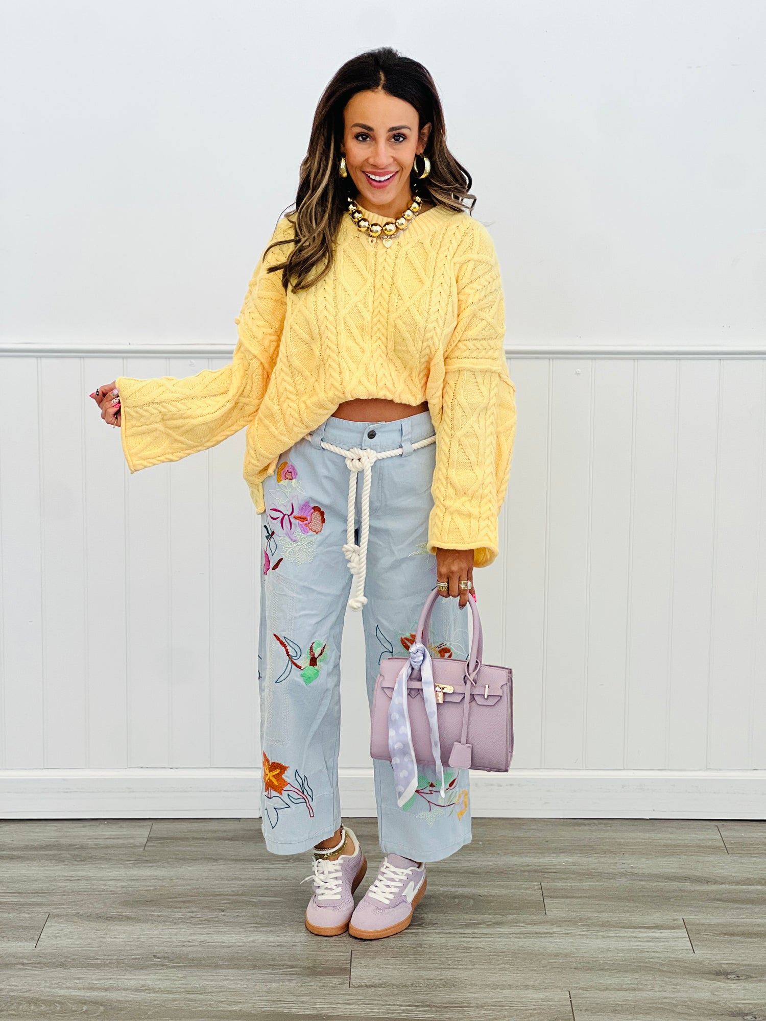 Yellow Cable Knit Sweater Top (Reg & Plus)