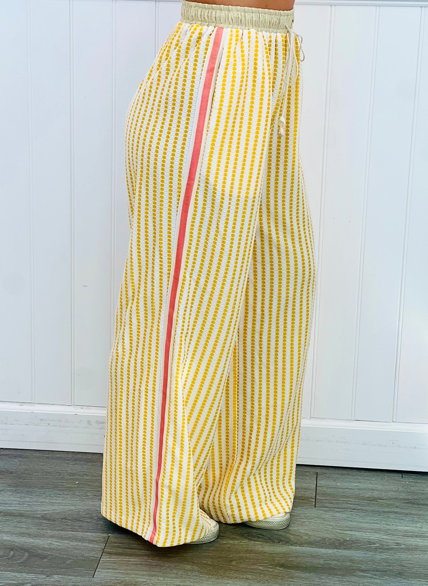 Yellow Multi Pull On Wide Leg Pants (Reg. and Plus)