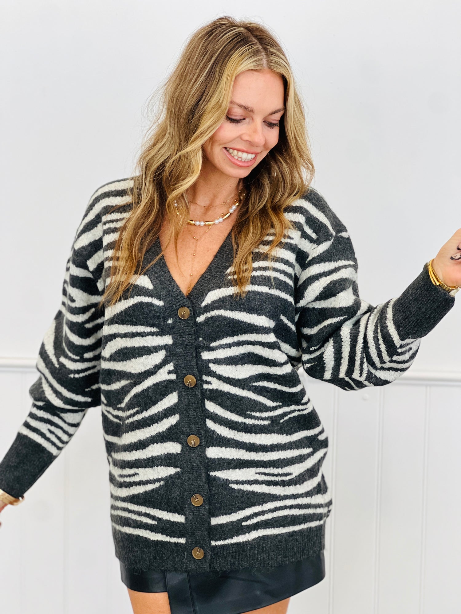 Zebra Print Button Up Cardigan (One Size) - 4 Colors